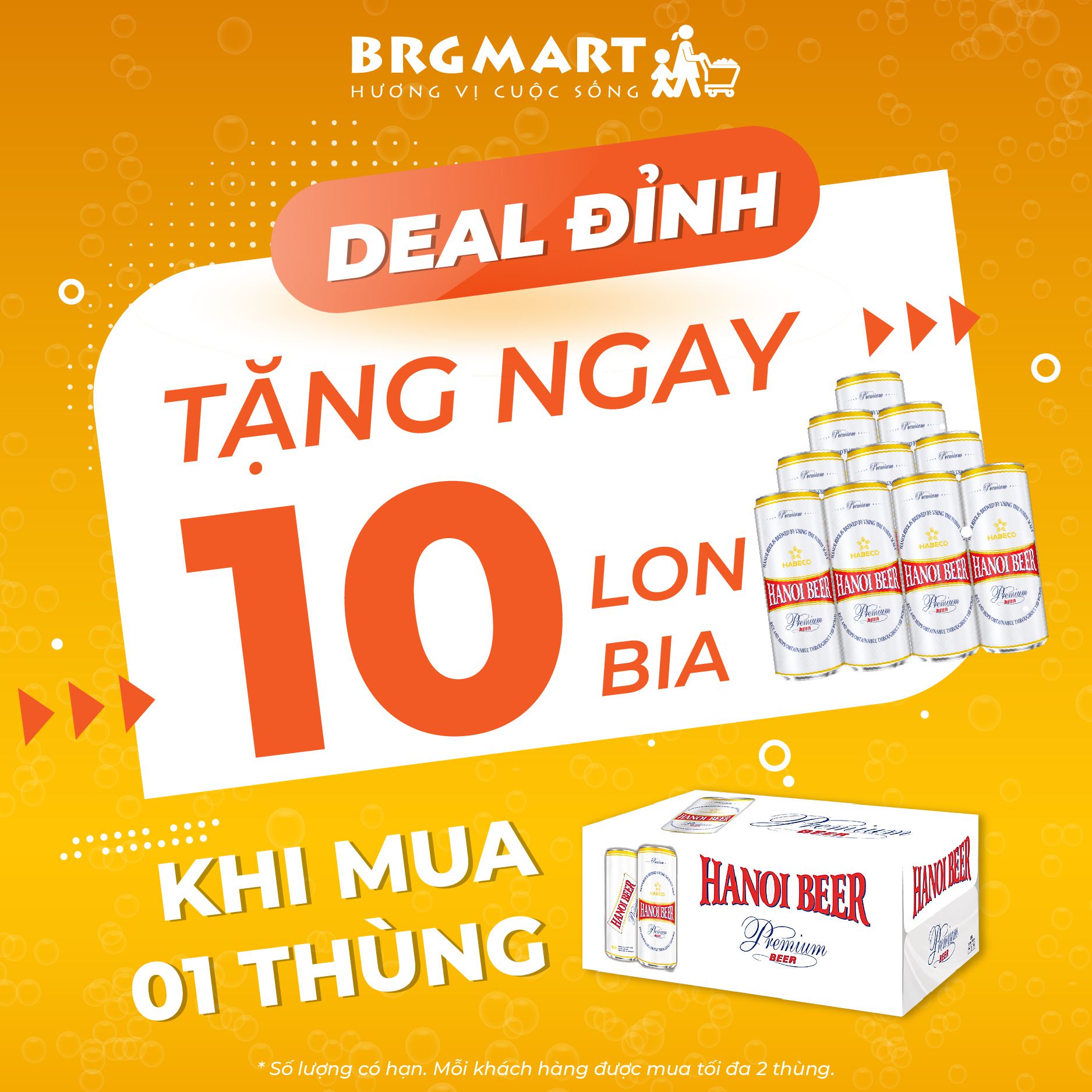 Hệ thống siêu thị BRGMart có tin vui cho cả nhà nhân dịp nghỉ lễ sắp tới với những bữa tiệc rôm rả, tụ tập cùng bạn bè hay gia đình, chẳng cần đi đâu xa cũng có thể thưởng thức bia ngon với GIÁ SIÊU KHUYẾN MẠI đây!!