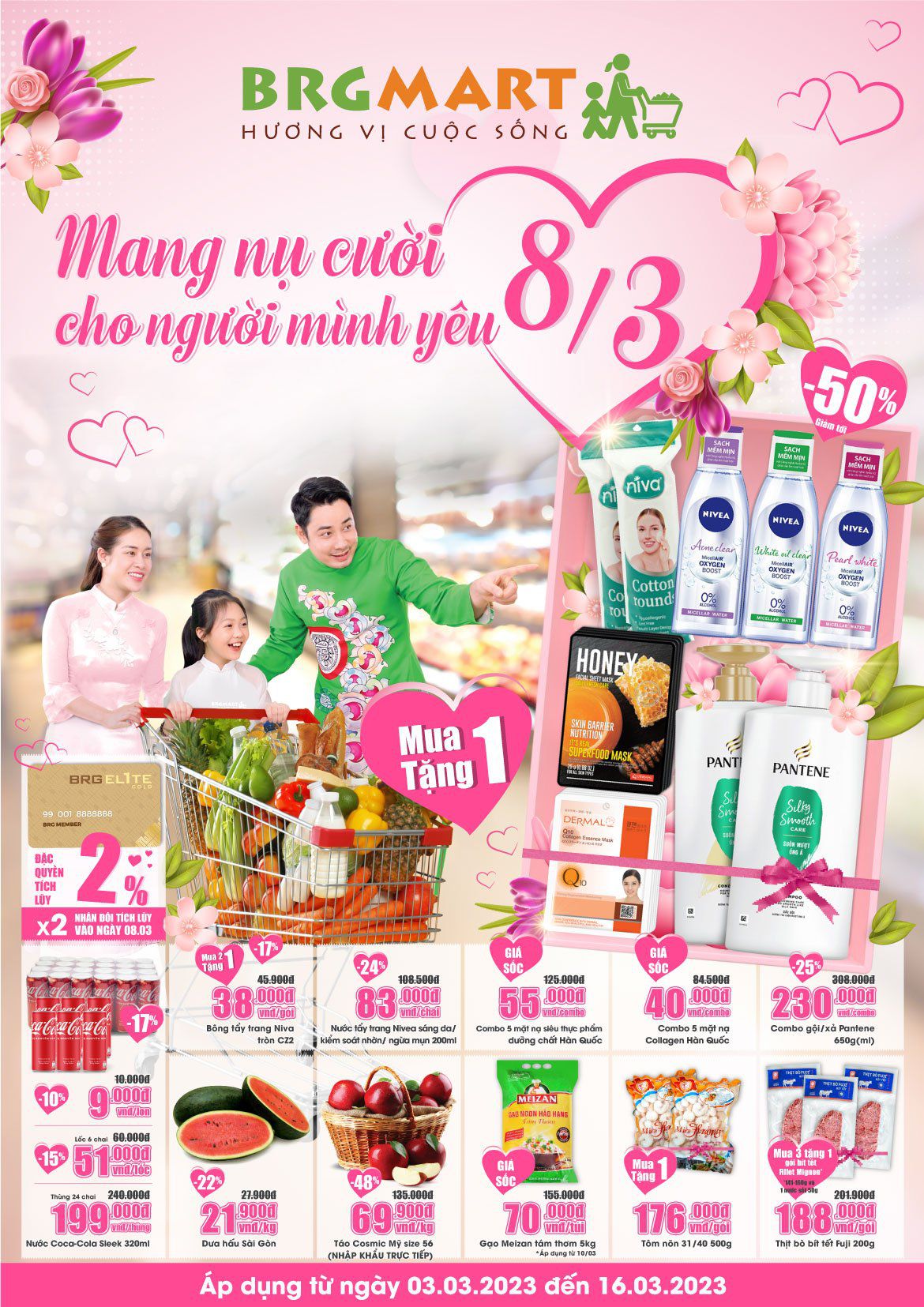 Mừng ngày của phái đẹp, siêu thị BRGMart tri ân khách hàng bằng hàng loạt các khuyến mại hấp dẫn từ ngày 03/03 - 16/03/2023 cho mọi người thoả sức mua sắm đây!