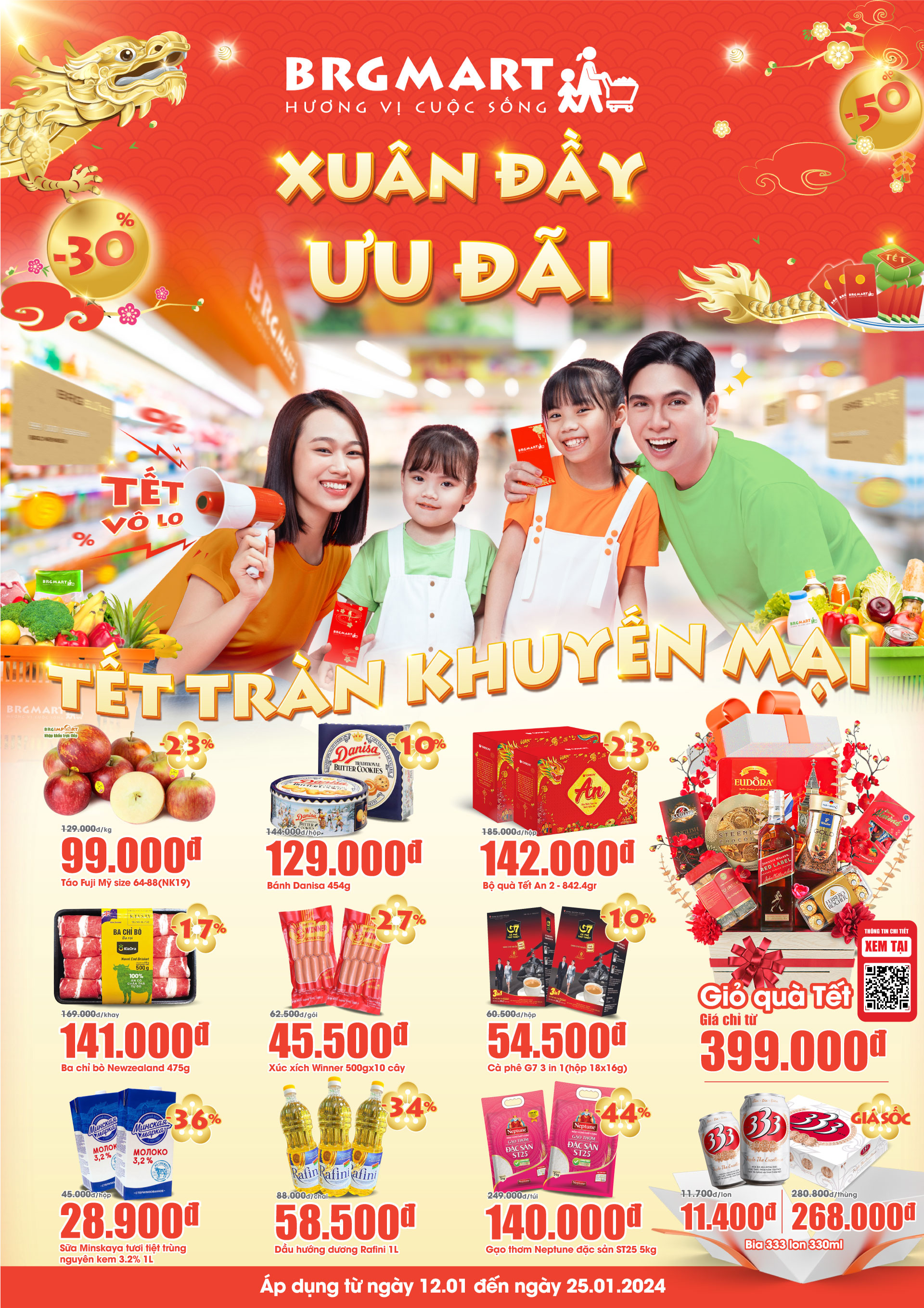 Từ ngày 29/12/2023 đến hết 9/2/2024, hệ thống siêu thị BRGMart & Haprofood/BRGMart triển khai các chương trình bán hàng Tết Nguyên Đán 2024 - XUÂN ĐẦY ƯU ĐÃI, TẾT TRÀN KHUYẾN...